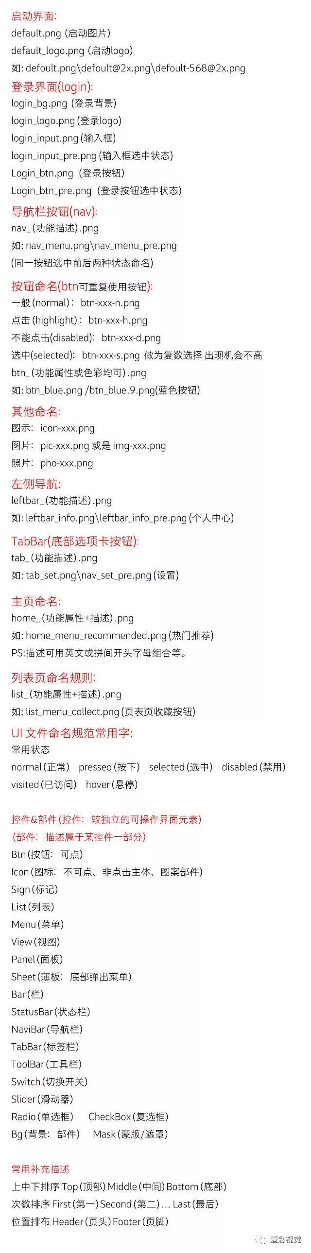 以下是常用命名,这是我的命名习惯,并不是规范,所以要灵活,如果实在不知道英文,就用拼音代替也行。