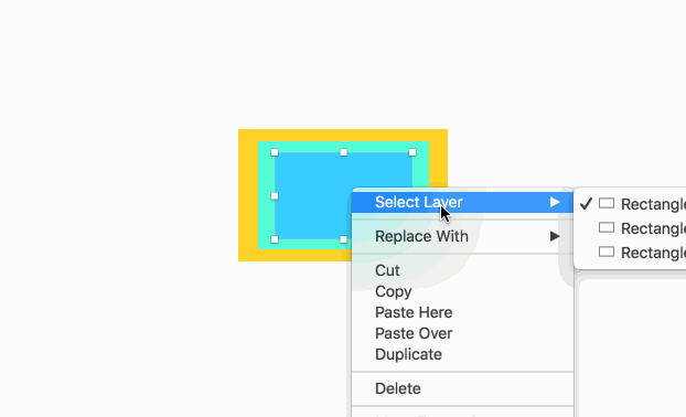 遇到多个图层堆叠时,我们可以通过右键点击最上面的图层选择想要的图层,再结合 option+command 组合快捷键进行移动操作就非常方便。