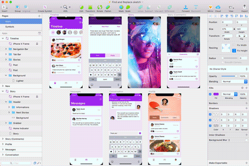 在进行多页面多画板修改颜色时,在不是symbol 的情况下,修改起来会很费时间。如何批量修改颜色,具体操作为:编辑——查找并替换颜色(option+command+F),需要注意颜色透明度,根据实际需要判断是否勾选。备注:sketch47版本还没有。