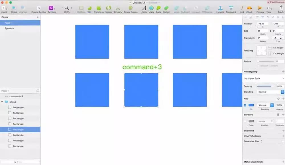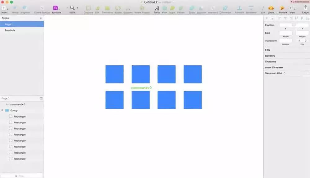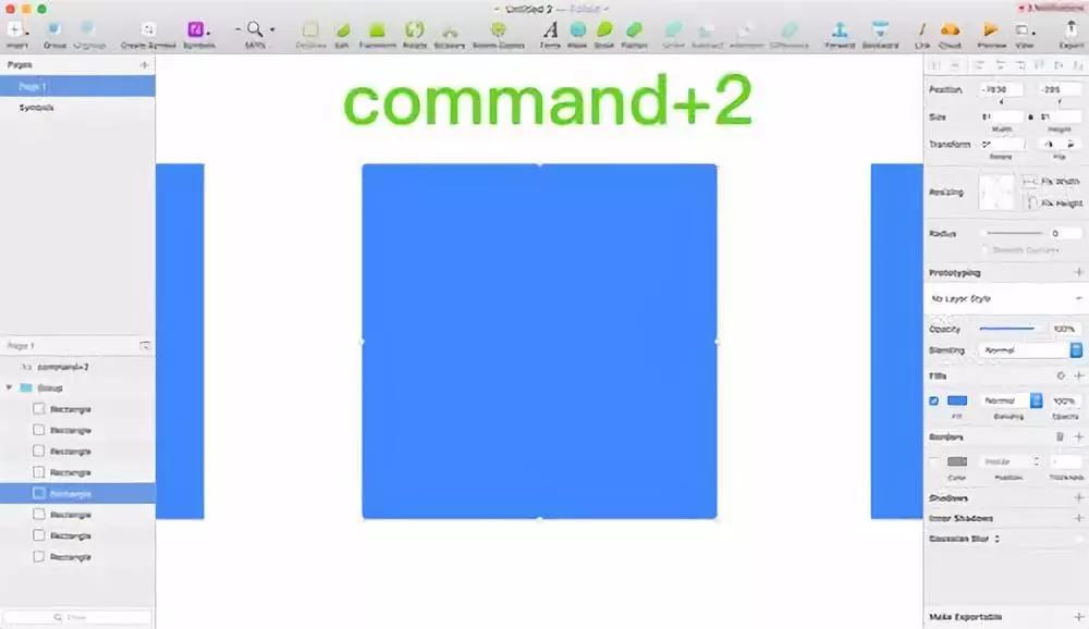 Command +2 将选中的元素放大到合适屏幕的尺寸,这个视图有一个妙用就是可以把复制的元素直接复制到当前元素的中间,这个特性非常实用,自己试过就知道了,肯定会有用到的地方。