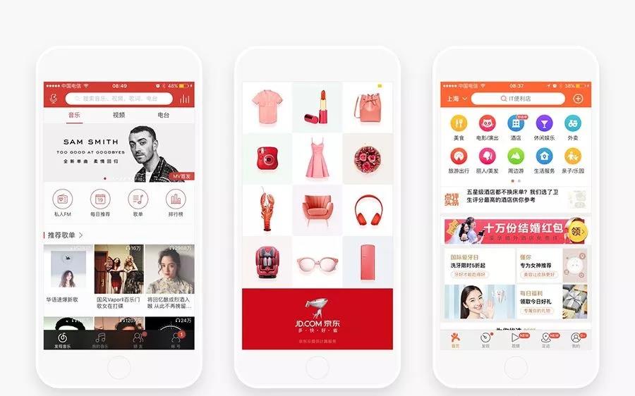 如红色系列:网易云音乐、京东、网易严选、网易考拉等等;也可以根据产品气质分类,如文艺、时尚、科技、可爱等等。
