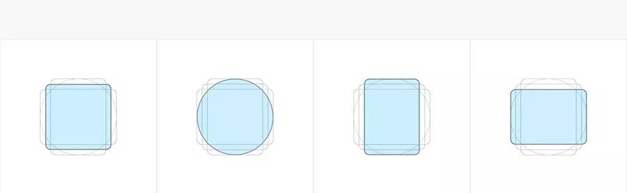 无论我们选择何种表现形式,在进行设计的时候都要保持风格的统一性,由于图标的体量不同,相同尺寸下不同体量的图标视觉平衡不尽相同,例如相同尺寸的正方形会比圆形显大。