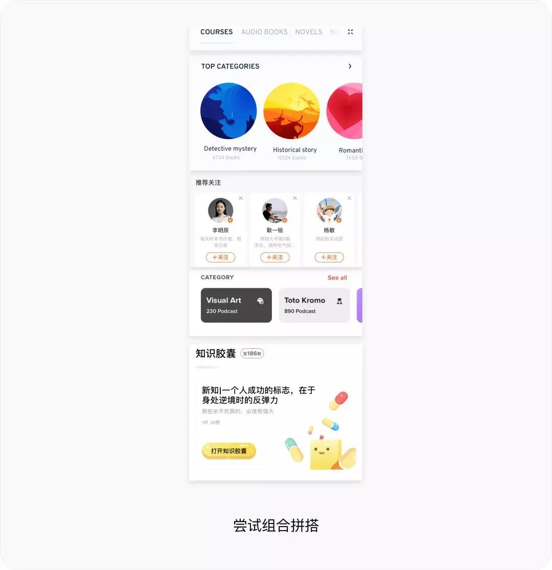 页面拼搭组合的好处在于,可以在设计之前找一下大致的风格界定,避免一些符合个人喜好的组件设计在页面中不符合整体设计的情况的出现,减少不必要的设计成本付出;拼搭组合的过程中能够激发更多灵感,为页面设计提供多种可能性,有力日常工作的提案。