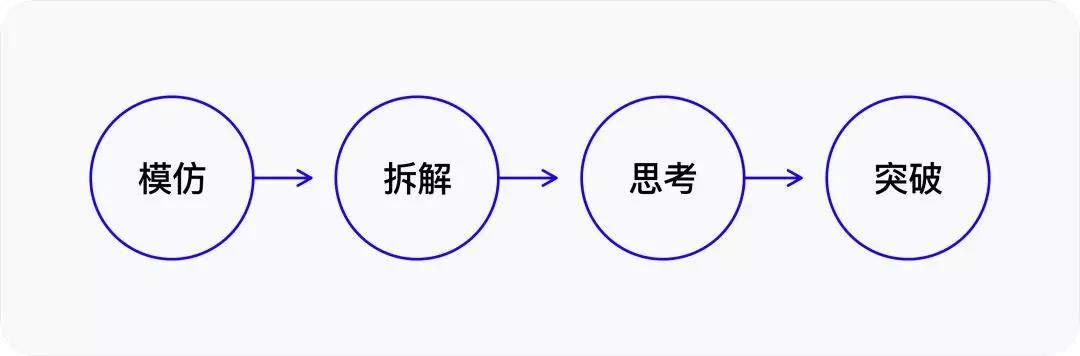 既然创意是打破现有重新组合的关系,那么我们在借鉴参考的时候也可以遵循同样的方法,在借鉴的过程中我们可以先进行模仿、拆解,思考、组合、最后再进行突破以新的形式展现出来。
