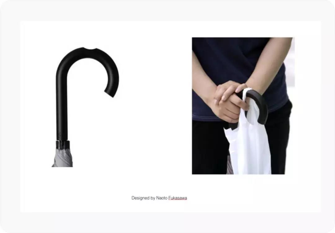 大家可以仔细回忆优秀的设计,能给大家带来深刻记忆的都是设计中那些惊人的细节,例如著名产品设计师深泽直人先生设计的雨伞,只是在手柄顶部增加了一个凹槽的设计,方便人们在站立时挂靠购物袋,减少人们手提购物袋所带了不适感,为人们日常购物提供了极大的便利。