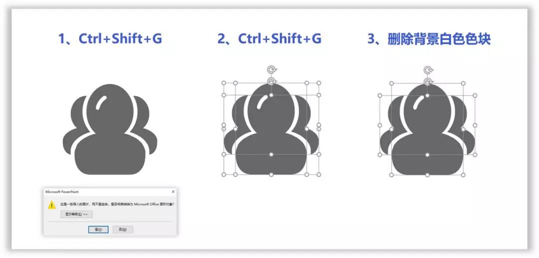 导入PPT里面之后,然后将其进行两次解组并删除多余的白色背景。