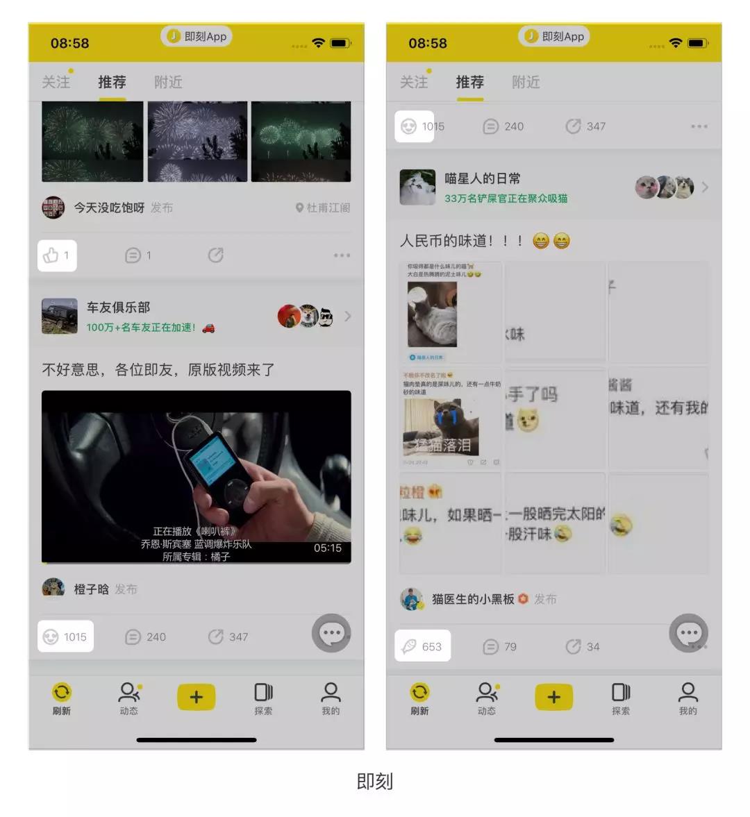 即刻根据不同的主题,点赞按钮会有所不同,提高用户的点赞积极性,同时能够鼓励UGC更多产出,点赞的按钮我们也可以延伸别的产品里。如下图所示: