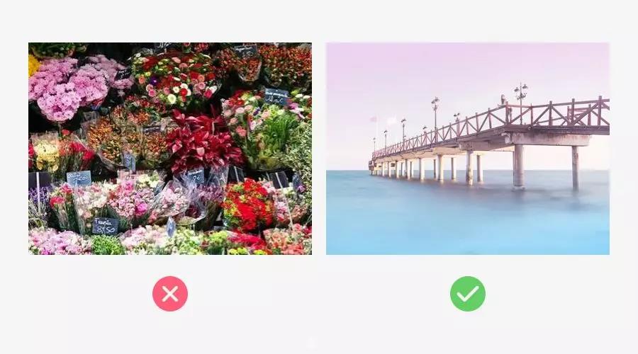 在选择图片的时候,要尽量选择主体表现突出,没有过多信息进行干扰的图片。我们要明确主题,寻找的图片要能单一的表现这个主题,如果一张图片中表现多个信息源的时候,会给人一种信息干扰。