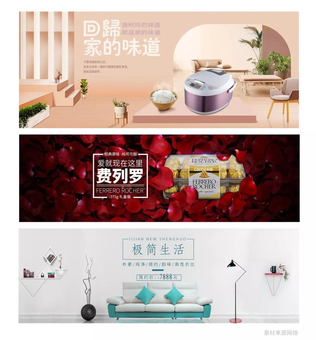 在选择广告banner主色调时,我们会更偏向于行业属性主色调>显眼主色调>情感主色调,(当然也有非常规的例如节日类的主色调)选择行业属性主色调往往能体现banner独特性。如教育一般为蓝色调,化妆品一般为粉丝调...