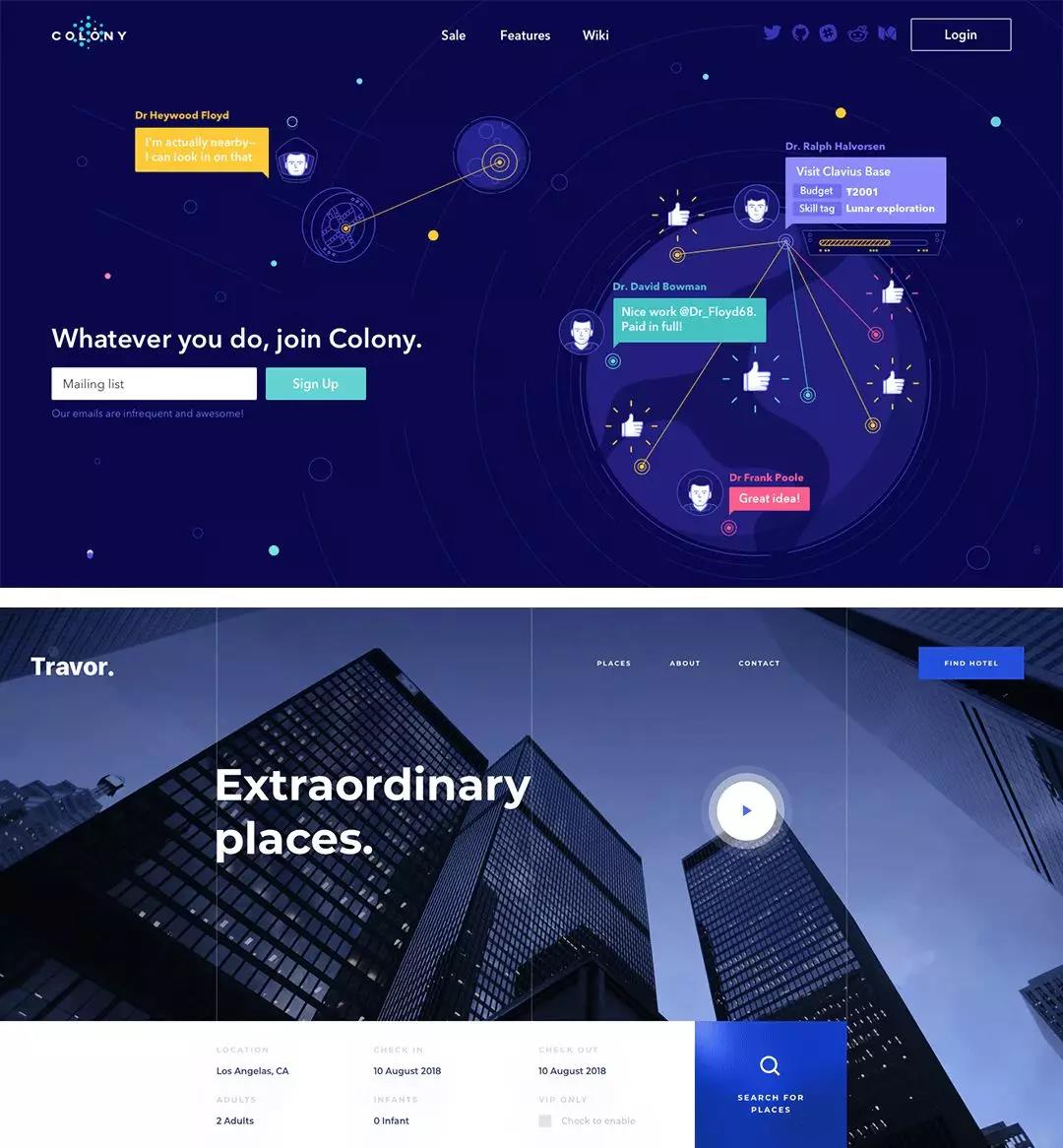 ②寻找相关竞品或参考,挖掘此类型设计的共同点。比如其中涉及到的元素:点、线、深色背景、文字修饰、光效等等。