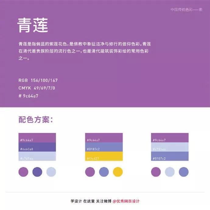 中国古代将青、赤、黄、白、黑视为“正色”,其他颜色称为“间色”。“紫”作为一种间色,自然难免遭受非议。不过也根据许多古籍记载,在中国传统文化中,紫色虽非正色,却由于它跟帝王、圣人、神仙的紧密联系,而被赋予了神秘、富贵的气质,成为一种祥瑞、沉稳、庄重的色彩。