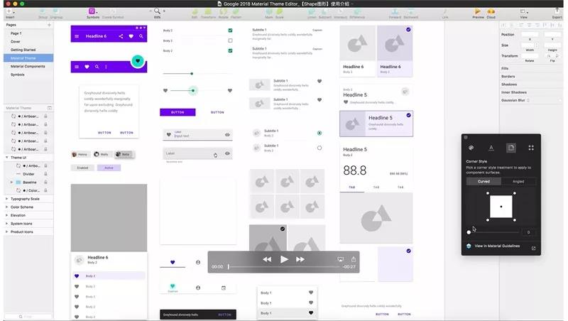有「Curved」 、「Angied」两个选项,通过这个插件可以全局设置卡片、按钮等的四个角形式,可以自定义直角、圆角或「折角」的形状。