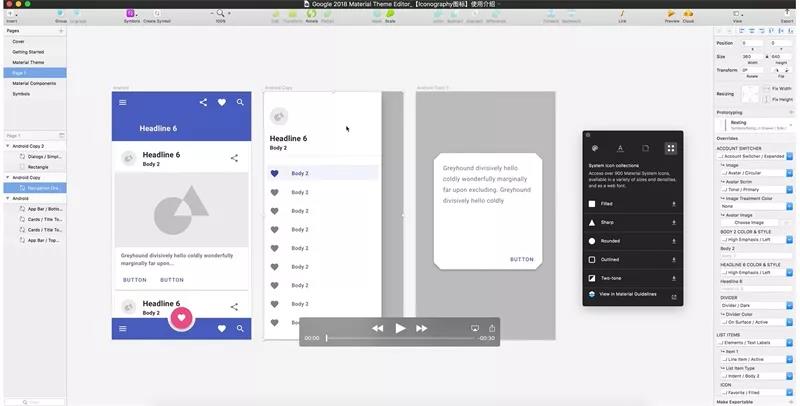 Material Design 新推出了多种图标风格(填充,圆角,锐利,描边和双色),能够通过该插件快速下载不同图标风格的 Icons Symbol 以供使用。