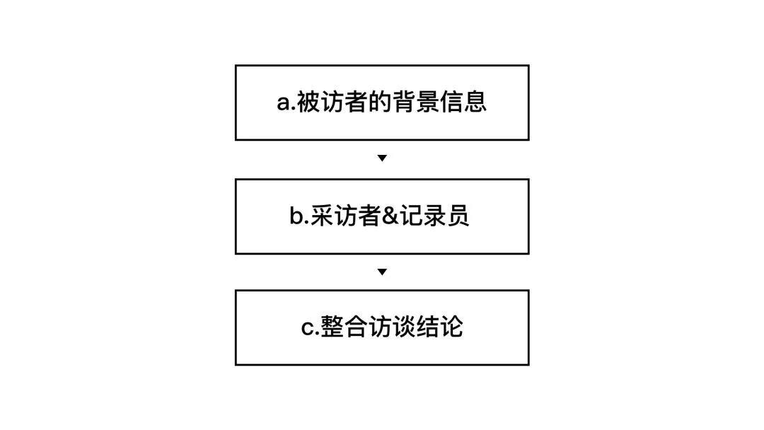 那么在用户访谈环节我们需要哪些准备呢?a.被访者的背景信息;b.采访者&记录员;c.整合访谈结论。