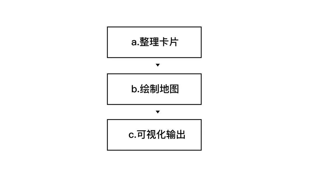 前面做的那么多的准备,都是为了这一趴的“绘制成体验地图”。那么在胜利的边缘试探时,我们还需要做什么呢?a.整理卡片;b.绘制地图; c.可视化输出。