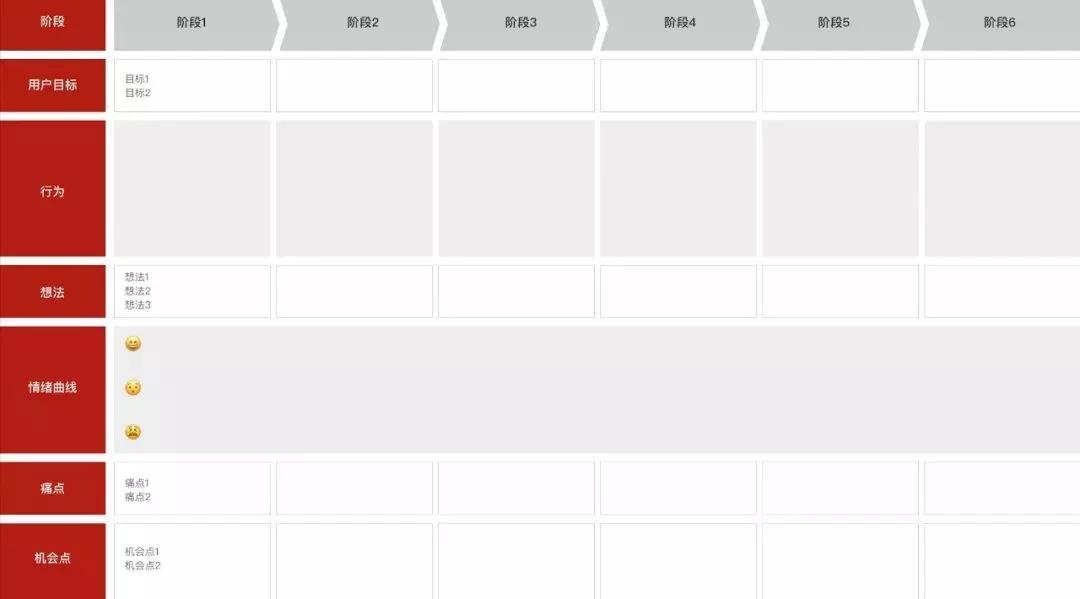 tips:行为:用户进入下一步需要做的事情;想法:在操作时,内心的想法是什么;爽点:感觉非常惊喜,超出自己预期的体验;痛点:挫折、破坏体验的坑爹感受;机会点:通过痛点,挖掘出来的解决方案。